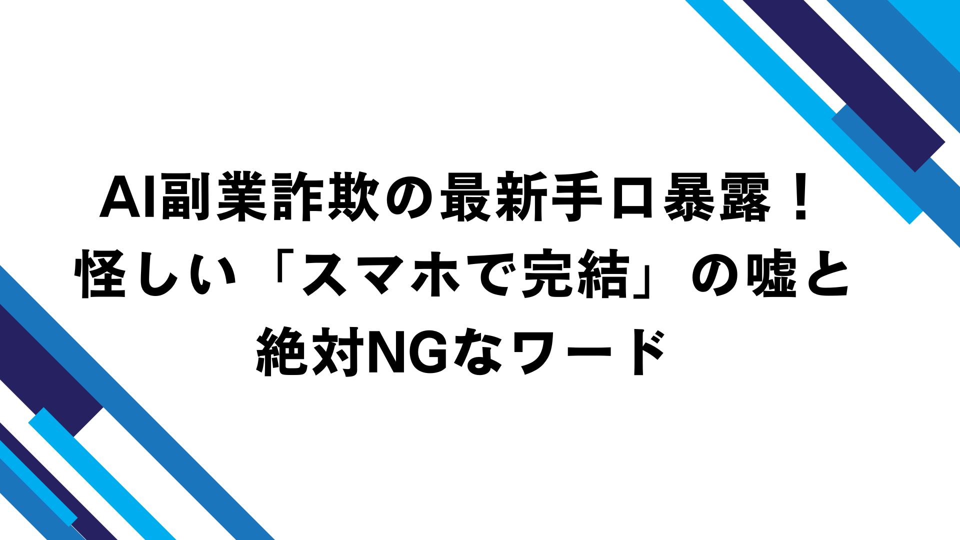 はっきり言いますが、「スマホだけで完結して、楽に高収入が得られるAI副業」は100%詐欺、または極めて悪質な情報商材です。